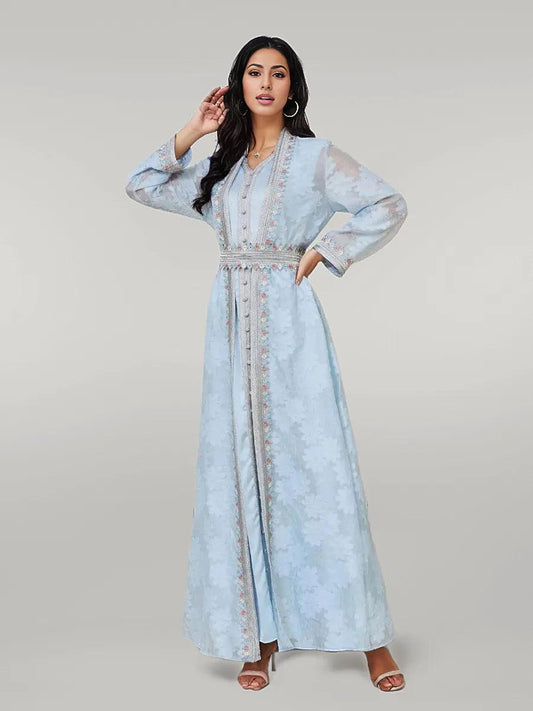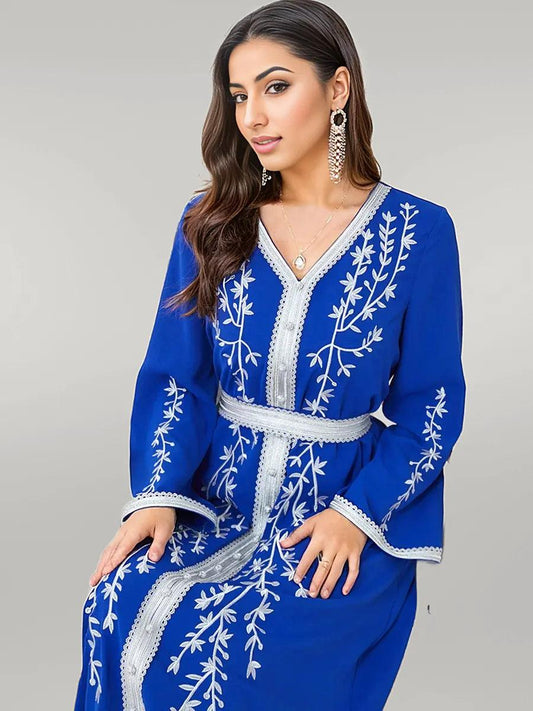 فستان قفطان كاجوال/للحفلات مع تطريز زهور
