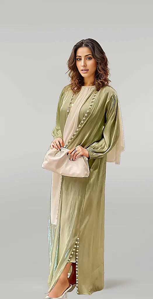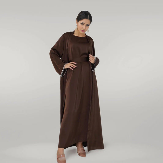 عباية أنيقة من الساتان مكونة من قطعتين